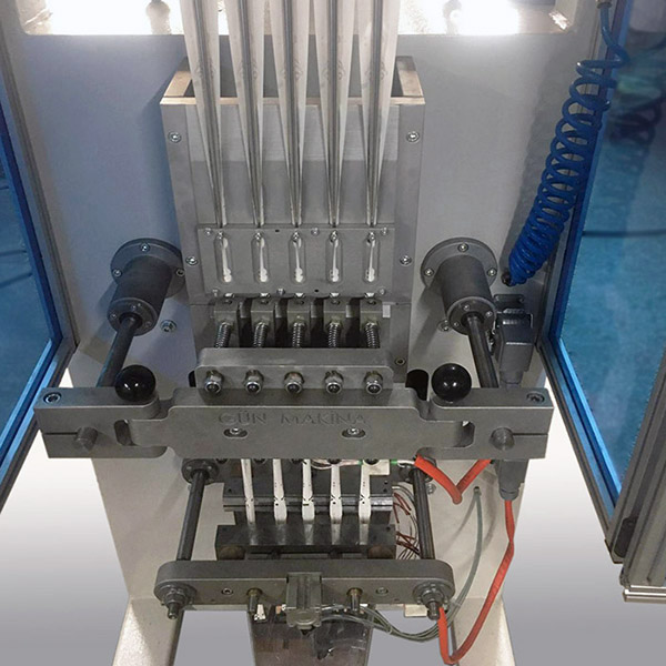 Yapıştırma özelliği kullanılan ambalaja göre sabit ısılı çene yardımıyla Makine ağırlığı yaklaşık 550 Kg.